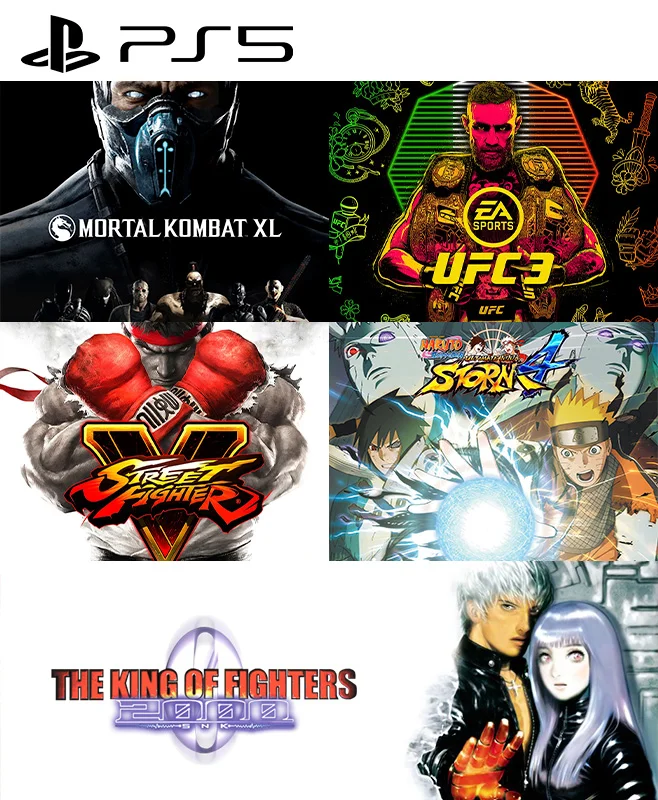 5 Juegos en 1 Mortal Kombat XL mas EA SPORTS UFC 3 Standard Edition mas STREET FIGHTER V mas NARUTO SHIPPUDEN Ultimate Ninja STORM 4 mas THE KING OF FIGHTERS 2000 PS5